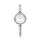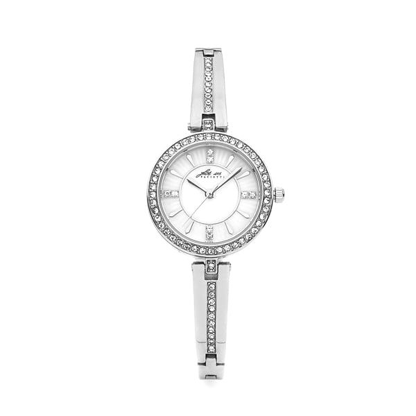Questo orologio è interamente in colore argento e ha una cassa di 27 mm su cinturino in acciaio. Il tutto impreziosito da zirconi.