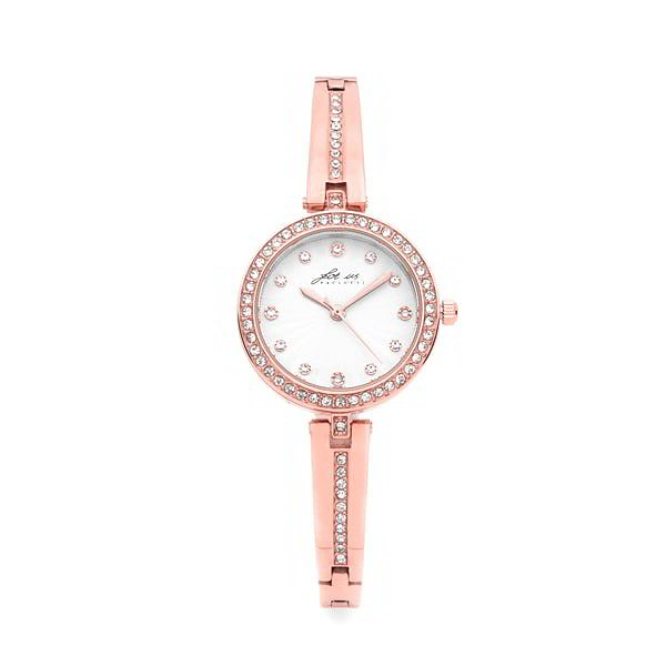 Questo orologio è interamente in colore oro rosa e ha una cassa di 27 mm su cinturino in acciaio. Il tutto impreziosito da zirconi.