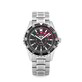 Questo orologio è interamente in acciaio e ha una cassa di 43 mm su cinturino in acciaio.