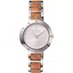 Cassa da 30 mm con cinturino in acciaio e pelle misto, con quadrante di colore silver con cristalli.