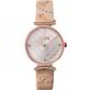 Cassa da 30 mm con cinturino in pelle e quadrante di colore silver con cristalli.