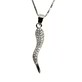 Questa collana è impreziosita da zirconi, e pendente a forma di cornetto.