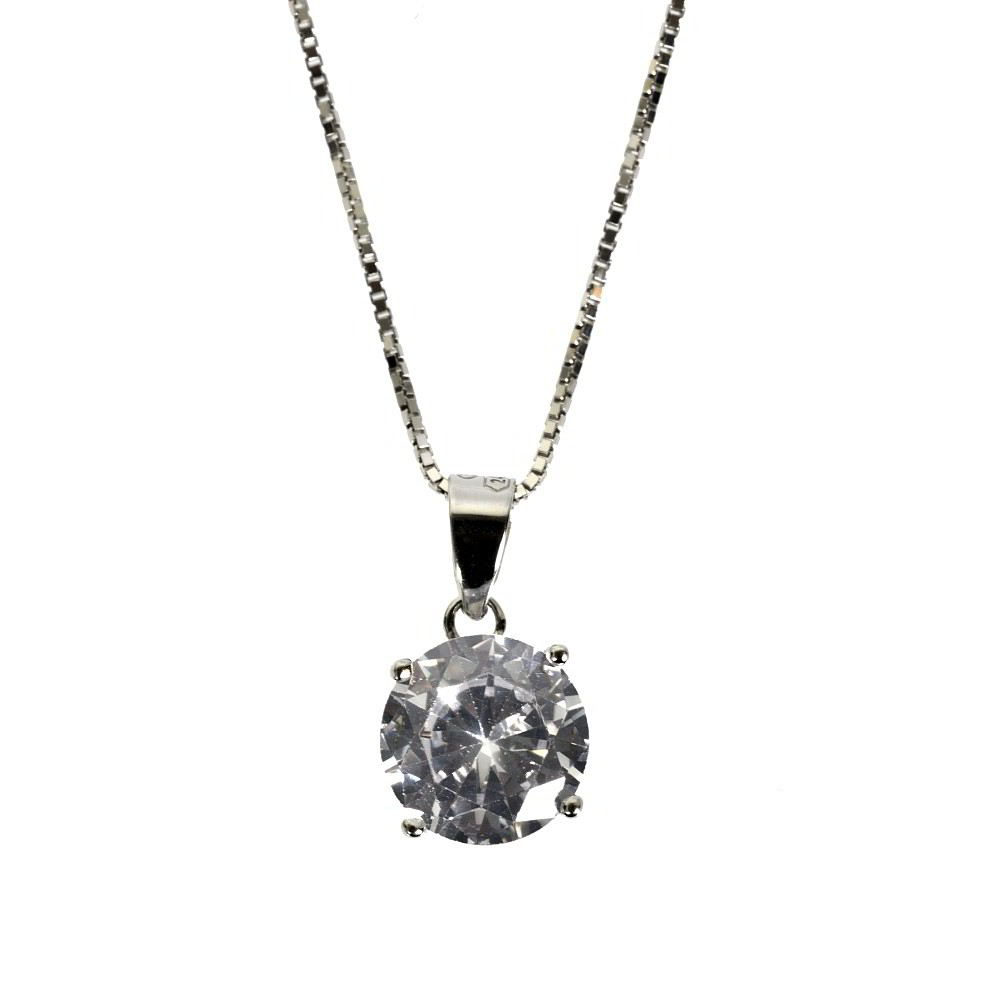 Questa collana è impreziosita da zirconi, e pendente punto luce di 0.4 cm.