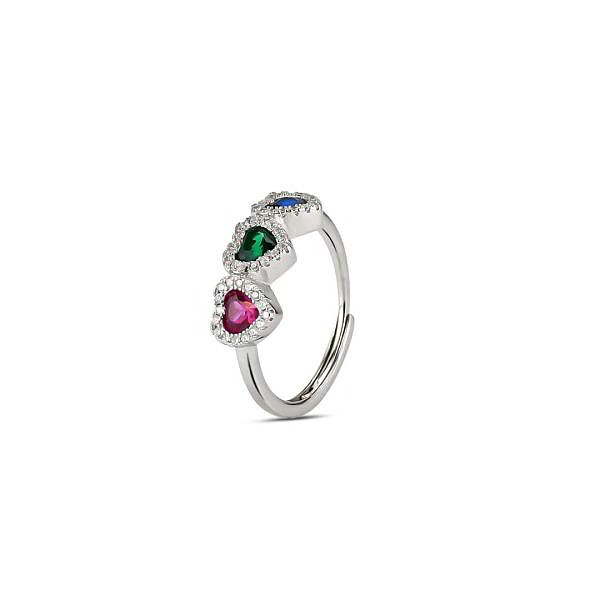 Anello Donna Boccadamo Sophie - AN475 Realizzato in argento 925 con placcatura in rodio. Con zirconi a formare un modello trilogy. Gioiello aperto per regolare la misura. Con scatola originale, certificato del brand e garanzia due anni.