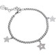 Bracciale Boccadamo Portami Fortuna - PF-BR02 Realizzato in acciaio rodiato con charms a forma di stella dalla superficie liscia e centrale in pavè di strass. Lunghezza cm 17,5, estendibile fino a cm 20,5.