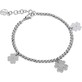 Bracciale Boccadamo Portami Fortuna - PF-BR03 Realizzato in acciaio rodiato con charms a forma di quadrifoglio dalla superficie liscia e centrale in pavè di strass. Lunghezza cm 17,5, allungabile fino a cm 20,5.