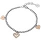 Bracciale Boccadamo Portami Fortuna - PF-BR05 Realizzato in acciaio rodiato con charms a forma di cuore e centrale placcato oro rosa con pavè di strass. Lunghezza cm 17,5, estendibile fino a cm 20,5.