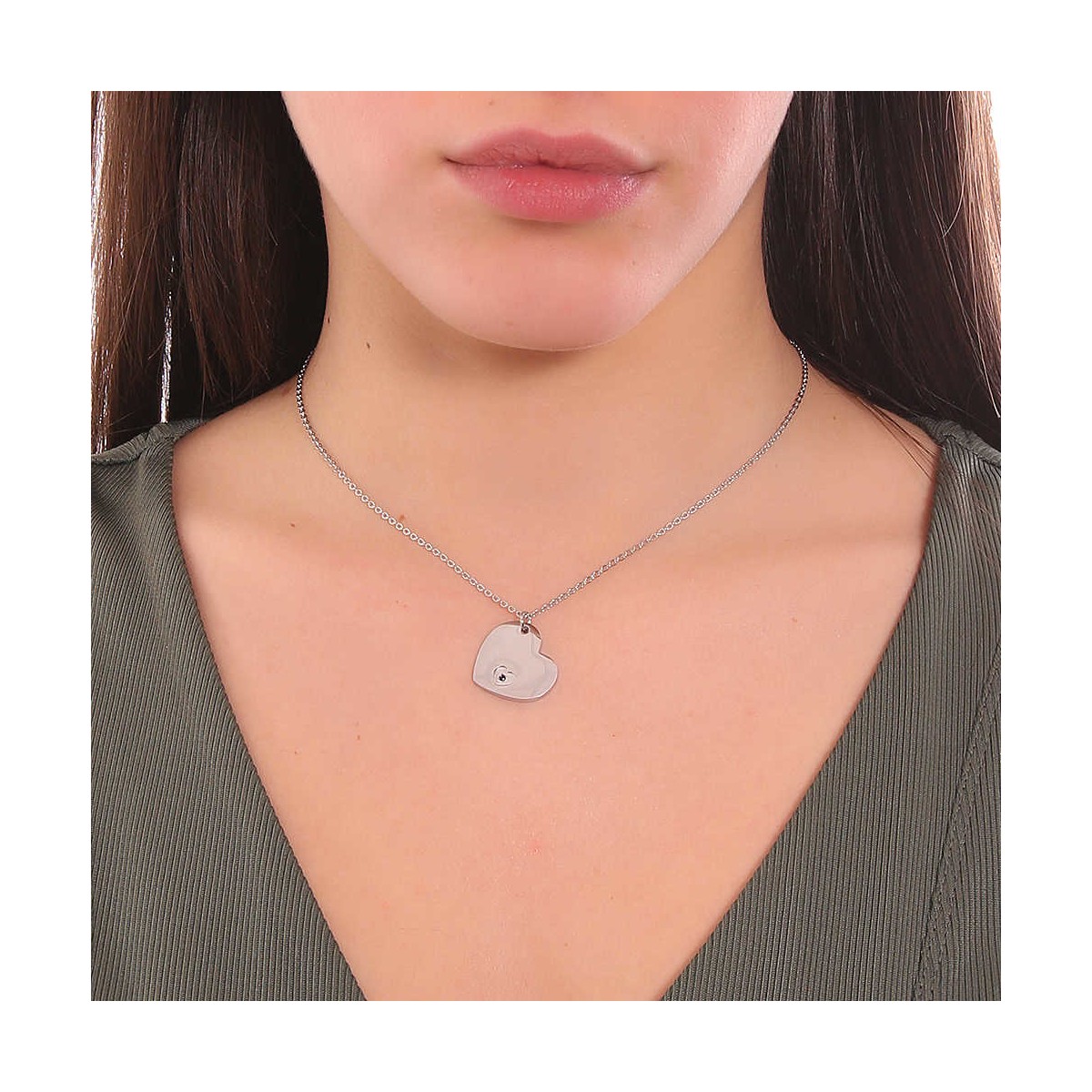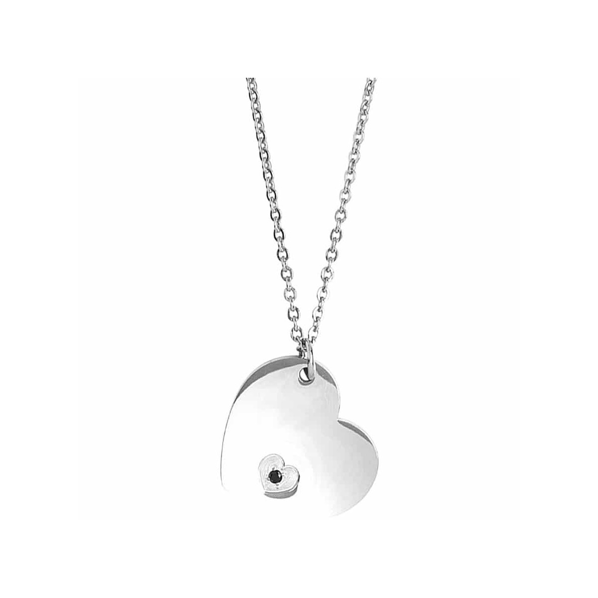 Collana Donna Boccadamo Piccoli Tesori - PI/GR61 Realizzata in bronzo rodiato. Il gioiello è formato da un pendente a forma di Cuoricino color argento con zircone nero incastonato. Terzo ciondolo con zircone bianco. Misura regolabile da 38 cm a 43,5 cm.