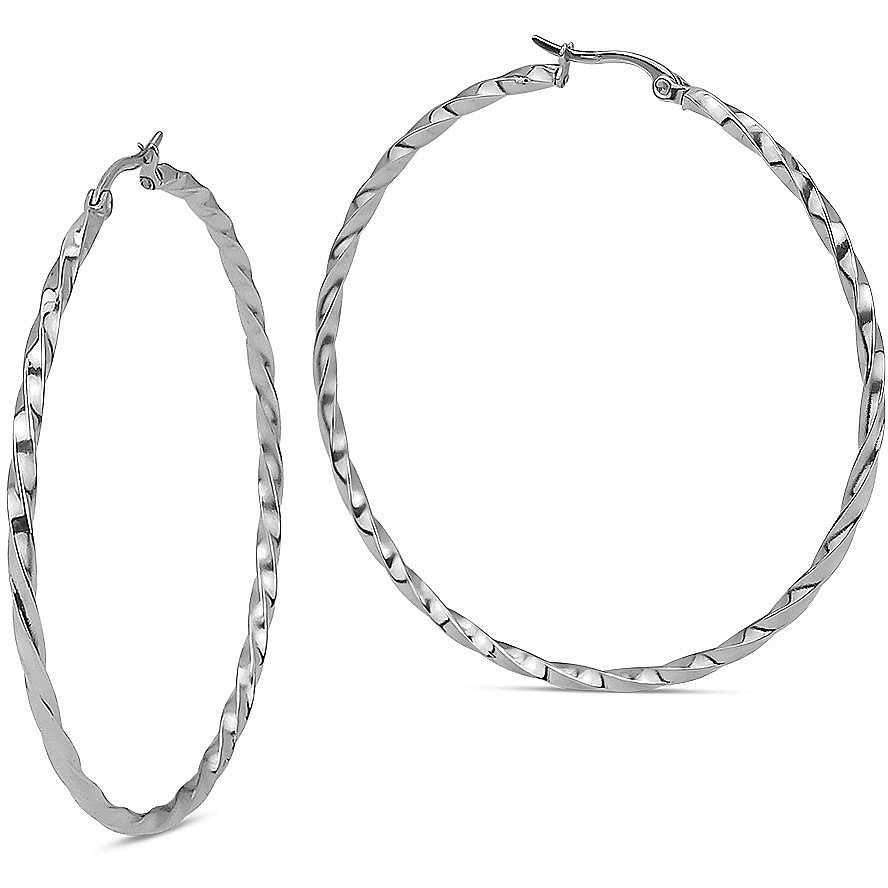 Orecchini Donna Boccadamo Le Creole - LK/OR10 Un semplice ed elegante paio di orecchini realizzati in acciaio 316l anallergico con placcatura in rodio. Il diametro è di 6 cm e il design torchon a formare un cerchio rigido.