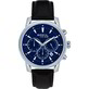 Questo orologio ha un movimento al quarzo con funzione cronografo. Cassa in acciaio da 43 mm e cinturino in pelle, datario ore 4 e dial blu. La sua pressione è di 5 atm. Con vetro minerale.