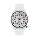 Con movimento al quarzo, con funzione di solo tempo. Un elegante subacqueo. La cassa è in acciaio di 42 mm con quadrante bianco e vetro minerale e indici blu. Il cinturino è in silicone bianco. La resistenza all'acqua è di 10 atm.