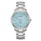 Con movimento al quarzo, funzione di solo tempo. La cassa è in acciaio del diametro di 35 mm. Il quadrante è di colore turchese con diamanti naturali, vetro zaffiro. Il cinturino è in acciaio silver con chiusura deployante di sicurezza. La resistenza all'acqua è di 10 atm.