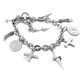 Bracciale Cesare Paciotti Lady Strong - JPBR0089B Realizzato in argento 925, con charm scarpetta, medaglia e croce, ciondolo pugnale. Con cristalli e onice.