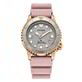 Una cassa di 37 mm in acciaio con cinturino in silicone fisarmonica e dial di colore grigio.