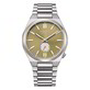 Una cassa di 40 mm in acciaio con cinturino in acciaio e dial di colore champagne.
