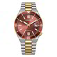 Una cassa di 40 mm in acciaio con cinturino in acciaio e dial di colore bordeaux con ghiera girevole.