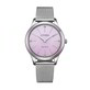 Ha il fondello serrato a vite per una resistenza di 10 atm. Cinturino in acciaio maglia Milano, con quadrante rosa.