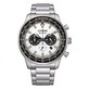 Un modello con datario e funzione di cronografo sul dial di colore bianco, modello panda. Cassa di acciaio di 44 mm con cinturino in acciaio.
