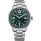 Ha il fondello serrato a vite per una resistenza di 10 atm. Interamente in acciaio con quadrante verde.