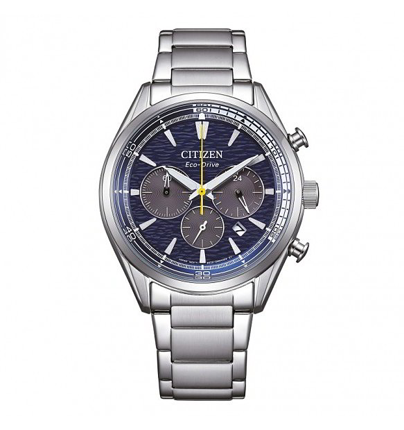Con movimento eco-drive. Cassa in acciaio di 43 mm con funzione di cronografo.