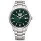 Una cassa di 40 mm in acciaio con cinturino in acciaio e dial di colore verde.