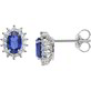 Zaffiri blu in taglio ovale 6 x 4 mm. Diamanti di 28 punti di ct colore G e purezza SI.