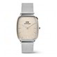 Completano lo stile elegante un cinturino in acciaio e una cassa di 32x36 mm.