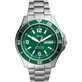 Orologio Uomo Fossil FB-02 - FS5690 Con movimento al quarzo, solo tempo. La cassa è in acciaio del diametro di 48 mm di colore argento. Il quadrante è di colore verde con datario ore 3. La ghiera è verde e vetro minerale. Cinturino in acciaio colore argento con chiusura deployante. La resistenza all'acqua è di 10 atm