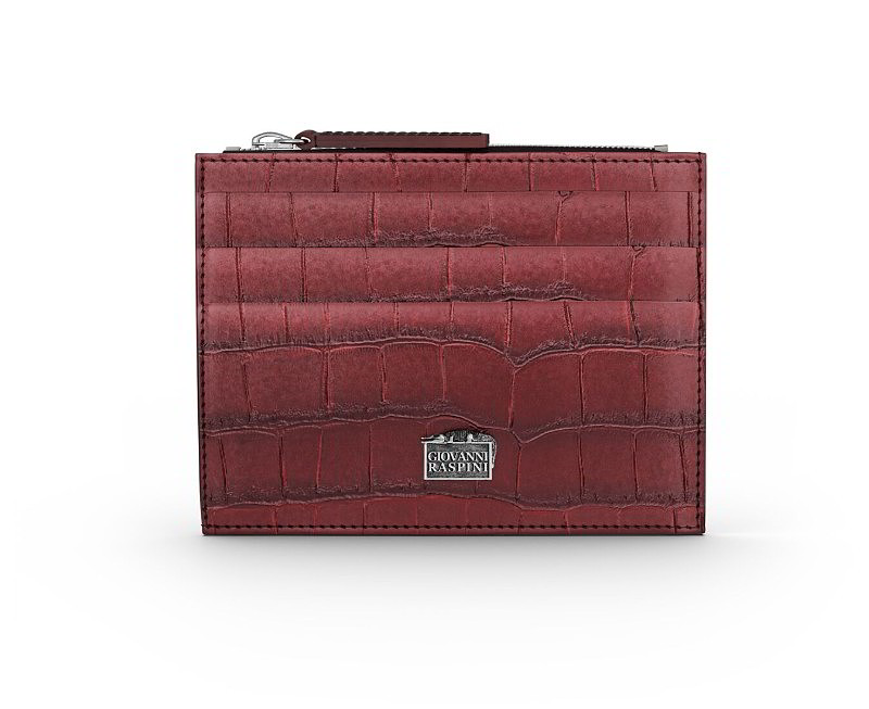 Portacarte Giovanni Raspini Zip Pelle Croco Borgogna - L0030