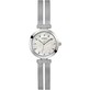 Un solo tempo con dial silver e dettagli cristallo, con cassa da 28 mm e cinturino in acciaio.