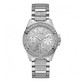 Un solo tempo multifunzione con dial argento e dettagli cristallo, con cassa da 40 mm e cinturino in acciaio.