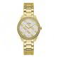 Un solo tempo con dial dorato e dettagli cristallo, con cassa da 37 mm e cinturino in acciaio.