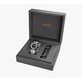 Cassa tonda di 42 mm nel corpo di acciaio abbracciato da un cinturino con chiusura deployante. Con quadrante nero e fondello e corona a vite. Vetro zaffiro e 10 atm.