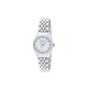 La cassa in acciaio è del diametro di 28 mm con quadrante silver. Il cinturino è anch'esso in acciaio.