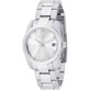 Un segnatempo con cassa da 34 mm in acciaio e cinturino in acciaio. Ha un movimento al quarzo con funzione di solo tempo e datario ore 3 con lente ciclopica e indici di cristalli.