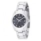 Un segnatempo con cassa da 34 mm in acciaio e cinturino in acciaio. Ha un movimento al quarzo con funzione di solo tempo e datario ore 3 con lente ciclopica e indici di cristalli.