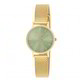 La cassa rotonda in acciaio è del diametro di 26 mm con quadrante bianco. Il cinturino è in acciaio in maglia Milano.