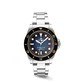 Cinturino in acciaio con chiusura deployante. Movimento al quarzo solo tempo con datario ore 3. Resistente all'acqua fino a 10 atm.