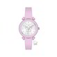 Con cassa da circa 31.5 mm in plastica e cinturino in silicone rosa con dial di colore bianco.