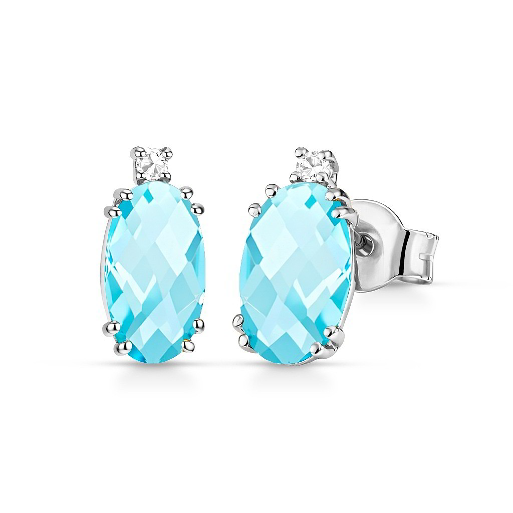 Realizzati in oro bianco 9kt, impreziositi da diamanti naturali di caratura 0.03 colore G e purezza SI, incastonato un quarzo azzurro ovale.
