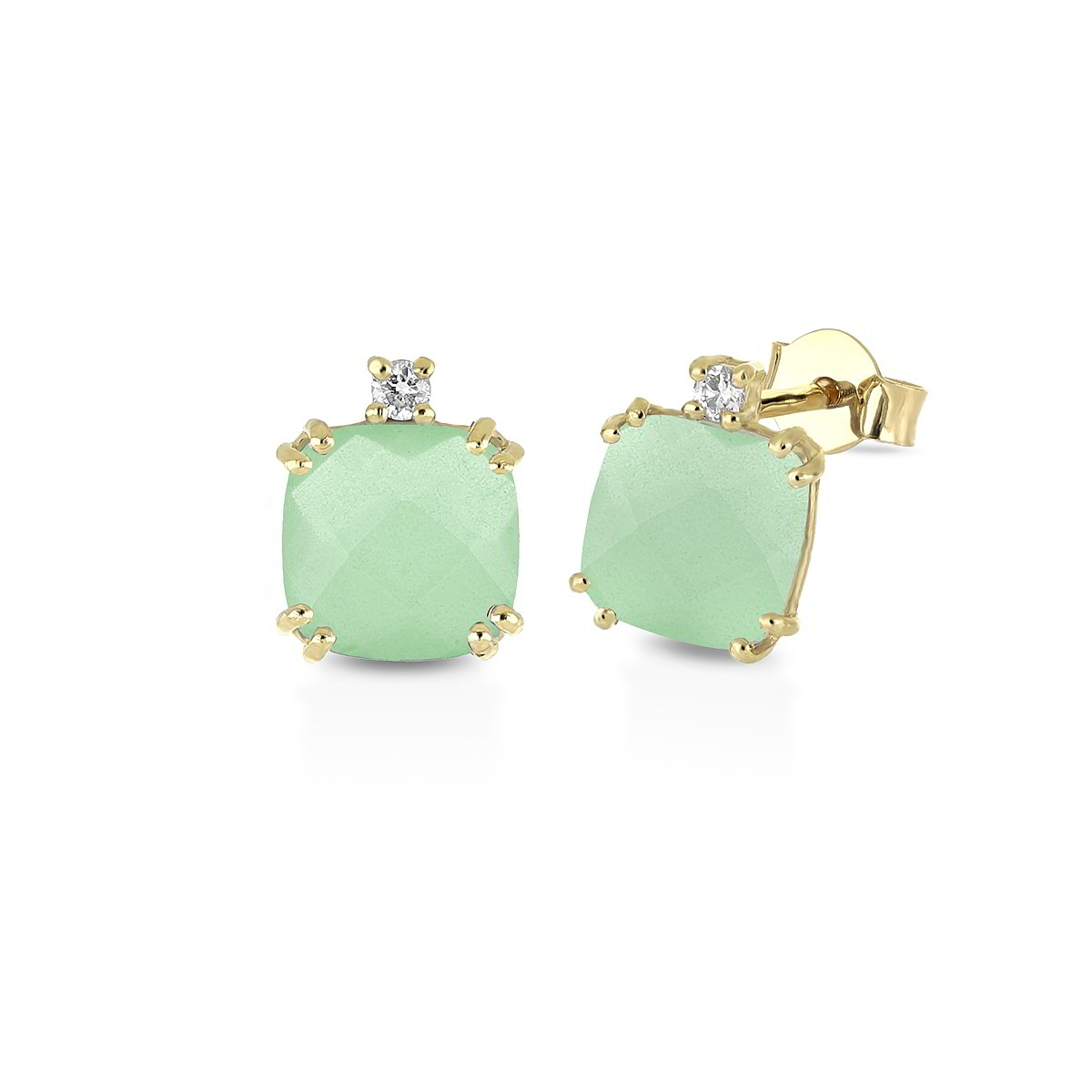 Realizzati in oro giallo 9kt, impreziositi da diamanti naturali di caratura 0.03 colore G e purezza SI, incastonato un quarzo verde quadrato.