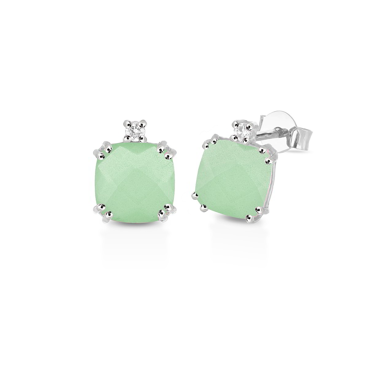 Realizzati in oro bianco 9kt, impreziositi da diamanti naturali di caratura 0.03 colore G e purezza SI, incastonato un quarzo rosa quadrato.