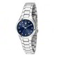 Con movimento al quarzo, solo tempo. La cassa è in acciaio con ghiera lucida del diametro di 30 mm. Vetro minerale e Quadrante di colore blu impreziosito da cristalli. Il cinturino è in acciaio con chiusura deployante. Resistenza all'acqua di 5 atm.