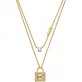Collana Donna Michael Kors Custom - MKC1630AN710 Realizzata in argento 925 con placcatura in oro giallo e impreziosita da zirconi. La lunghezza è di circa 34 + 5 cm, gioiello con simbolo del brand e catenina leggera doppia. Con scatola originale, certificati del brand e garanzia di 2 anni.
