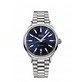 Cassa tonda di 40 mm e corpo di acciaio abbracciato da un cinturino con chiusura deployante. Con quadrante blu scuro vetro zaffiro e 5 atm.