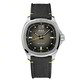 Cassa quadrata di 40 mm e appunto il nome di TV che ritorna nel corpo di acciaio silver della sua cassa appunto, con un cinturino in tessuto, chiusura deployante. Con quadrante sfumato graduato e fondello e corona a vite. Vetro zaffiro e 20 atm.