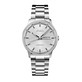 Cassa tonda di 40 mm e dial silver nel corpo di acciaio abbracciato da un cinturino con chiusura deployante. Con fondello e corona a vite. Vetro zaffiro e 10 atm.