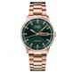 Cassa tonda di 40 mm e dial verde nel corpo di acciaio abbracciato da un cinturino con chiusura deployante. Con fondello e corona a vite. Vetro zaffiro e 10 atm.