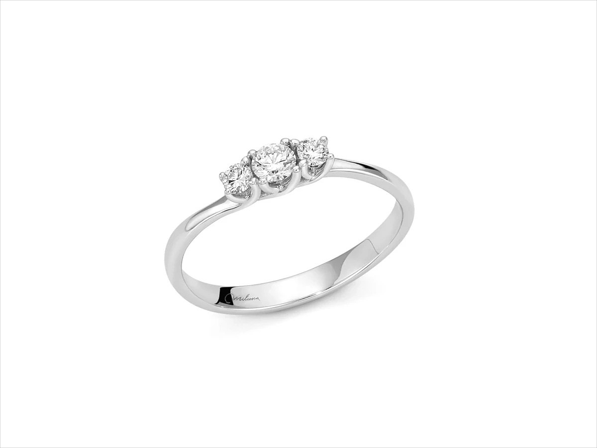 Un gioiello realizzato in Oro bianco 18kt, con 3 diamanti taglio brillante di 0.26 punti di carato totali, colore G purezza Si.