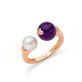 Un modello ad abbraccio con sfera di Ametista di 8 mm e perla vera R di 6.5/7 mm.